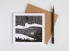Created digitally with a mix of hand-drawn elements and photographic textures. Size: 135 x 135mm cards with 140mm square envelopes. Paper: Printed on FSC Certified ‘Mohawk Superfine Ultrawhite Eggshell’ which is manufactured with wind-power. Supplied with recycled kraft envelopes. Cards are left blank inside. Printed and made in the UK.