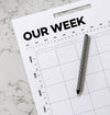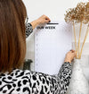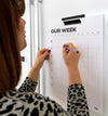 Family Wall Planner weekly sheets to organise the whole family in one place covering a whole year! Space for x5 family members. Small dot grid section for meal planning, notes or reminders. Undated, all you have to do is ring/underline the month and dates and off you go. There is space for AM/PM and evening activities and scheduling. x26 double sided sheets of bright white uncoated paper and black powder-coated metal wall bracket. Comes boxed.