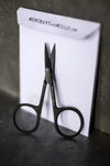 Tougher than old boots and supremely sharp and black. Small and precise in a deep, permanent black steel. 4" or 10cm. These are suitable for having next to your machine for snipping threads.
