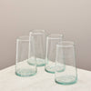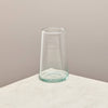 Highball glass. The perfect water glass or for serving long-cocktails, gin and tonic, soda, beer and cider. Handmade using recycled glass. Each piece is completely unique and individual with the colour and appearance varying slightly. Dimensions Capacity: 330ml Height: 12cm Width: 7cm Care We will always recommend love and careful handling of our products, but if washing up isn’t for you, these glasses can be washed in domestic dishwashers.